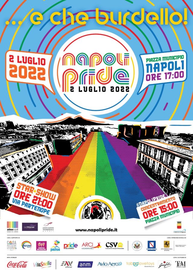 Sul sito napolipride.com il fitto programma che si concluderà in piazza Plebiscito e Piazza dei Martiri con una istallazione dal titolo “Sit With Pride” in cui una sedia di una scuola di Napoli su cui un ignoto appose una scritta sessista ed omofoba, divenuta grazie alla funzione di educatore del prof. Marco Taglialatela un simbolo di educazione alle differenze sarà in piazza alla luce del sole disponibile ad accogliere tutte le persone che insieme a quel simbolo vogliano manifestare con una foto la lotta non solo di qualcuno,ma di tutti e tutte al bullismo nelle scuole a partire da quello omofobico e trans fobico a tutti gli altri.